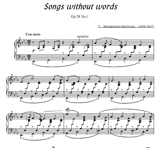 F.Mendelssohn Songs without words for piano solo 门德尔松 无词歌 Op.38