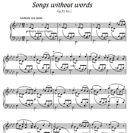 F.Mendelssohn Songs without words for piano solo 门德尔松 无词歌 Op.53