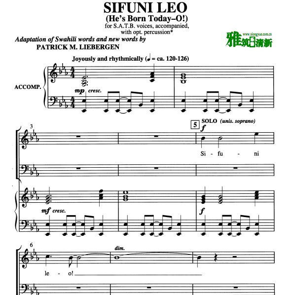 Sifuni Leo! (He's Born Today-O!)四声部SATB合唱钢琴谱