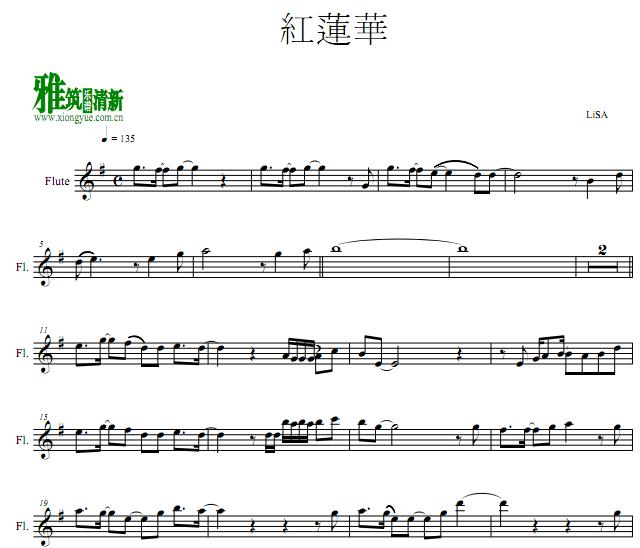 鬼灭之刃 红莲华 紅蓮華长笛钢琴二重奏谱