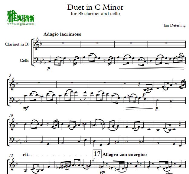 琴譜 Sheet Music 流行音乐乐谱 楽譜 五线谱 单簧管大提琴二重奏谱 Duet in C Minor PDF格式 共8页 高清晰版 可打印