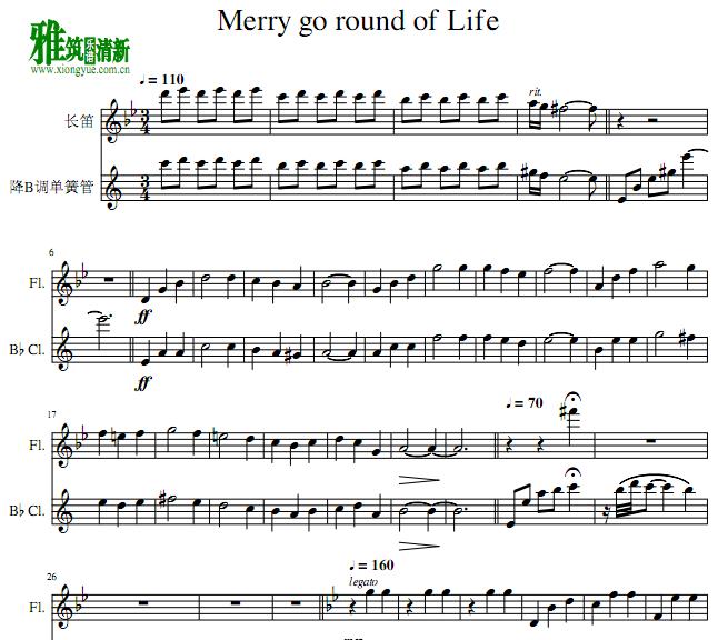人生的旋转木马 长笛单簧管二重奏谱