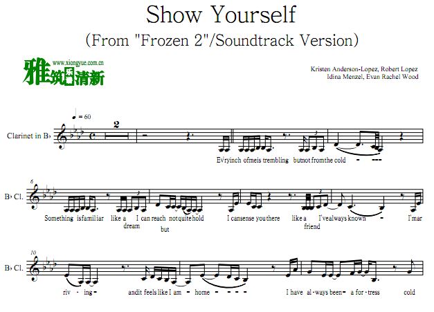 FROZEN2 - Show Yourself 单簧管谱 F#-G-Ab调