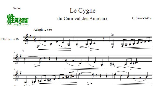 琴譜 Sheet Music 流行音乐乐谱 楽譜 五线谱 圣桑Saint Saens - Le Cygne天鹅单簧管谱 PDF格式 共1页 高清晰版 可打印