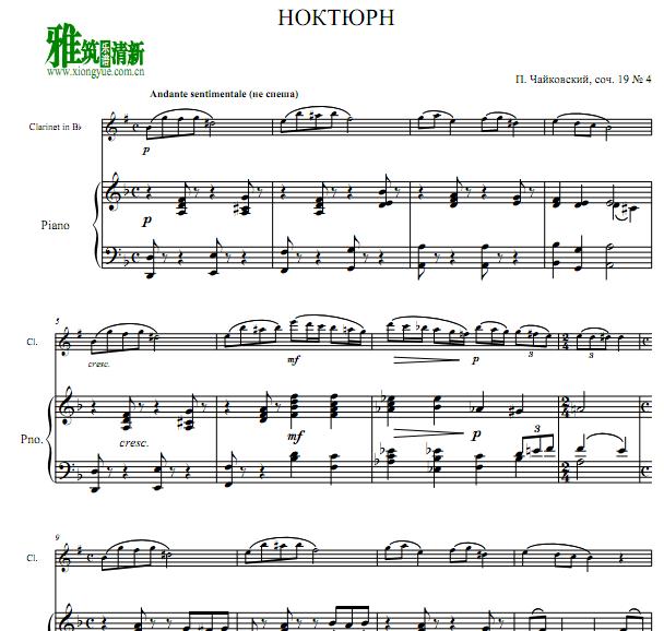 柴可夫斯基夜曲 单簧管钢琴伴奏谱