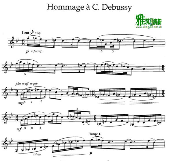 琴譜 Sheet Music 流行音乐乐谱 楽譜 五线谱 hommage a C.Debussy 致敬德彪西单簧管谱 PDF格式 共4页 清晰版 可打印