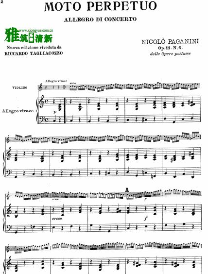 帕格尼尼 无穷动 钢琴伴奏谱 小提琴分谱
