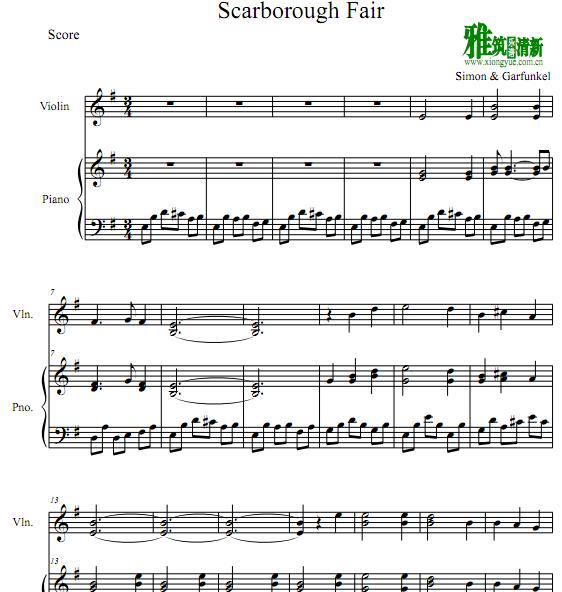 斯卡布罗集市Scarborough Fair 小提琴钢琴重奏谱