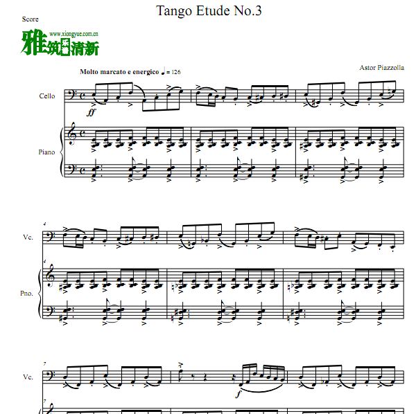 Astor Piazzolla's Tango Etude No. 3 大提琴钢琴合奏谱