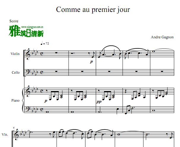 相见如初 Comme Au Premier Jour小提琴大提琴钢琴三重奏谱
