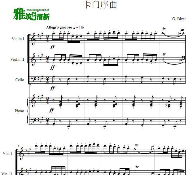 卡门序曲二小提琴一大提琴钢琴四重奏谱