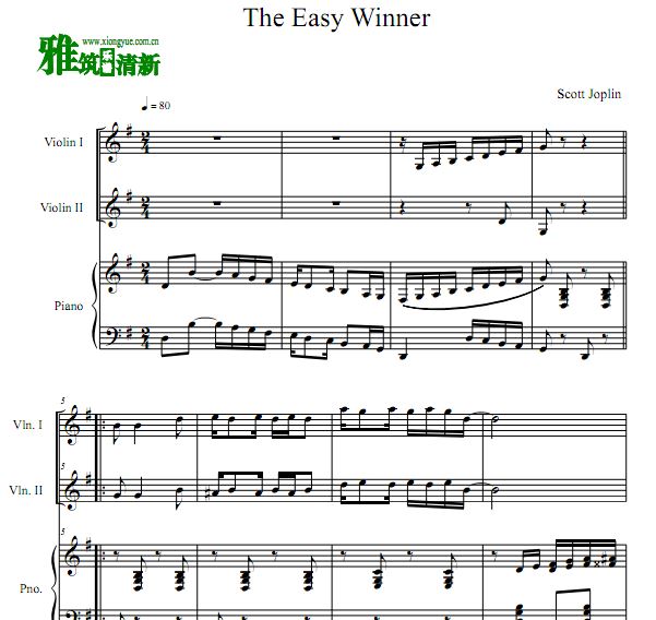 乔普林Scott Joplin - The Easy Winners双小提琴钢琴重奏谱 琴譜 楽譜 五线谱 PDF格式 高清晰版 可打印