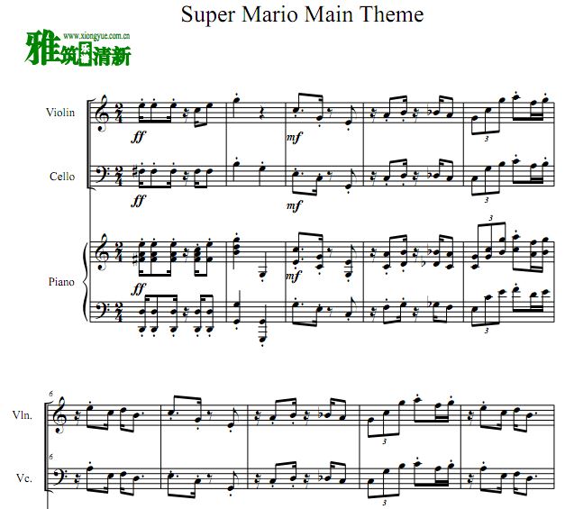 琴譜 Sheet Music 流行音乐乐谱 楽譜 五线谱 超级玛丽 Super Mario小提大提钢琴三重奏谱 PDF格式 高清晰版 可打印