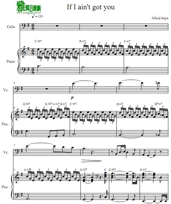 Alicia keys - If I Ain't Got You 大提琴钢琴谱