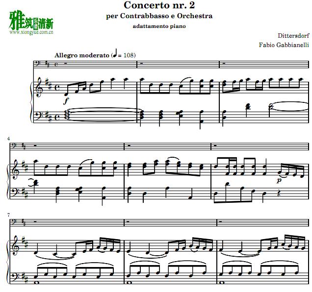 Dittersdorf 迪特斯多夫 D大调低音提琴协奏曲 钢琴伴奏谱
