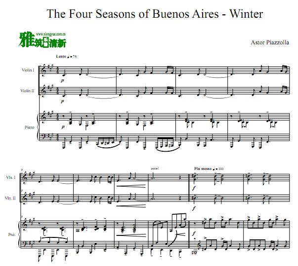 琴譜 Sheet Music 流行音乐乐谱 楽譜 五线谱 皮亚佐拉 布宜诺斯艾利斯的四季-冬小提琴钢琴三重奏谱 PDF格式 高清晰版 可打印