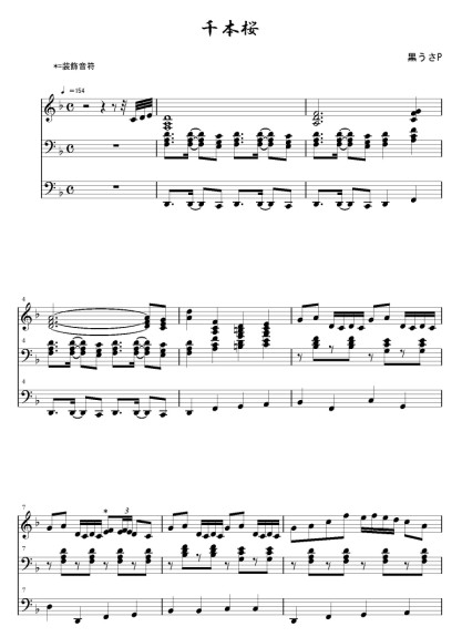 Sen-bon zakura 1000 cherry trees 千本桜钢琴谱