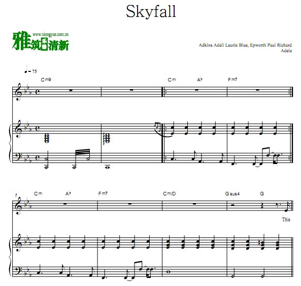 Adele - Skyfall 四声部SATB合唱钢琴伴奏谱...