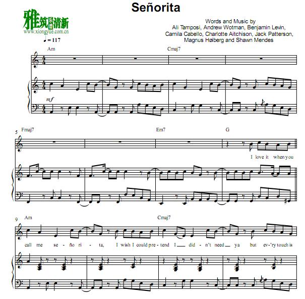 Shawn Mendes & Camila Cabello - Señorita原版钢琴伴奏谱 Senorita原版歌谱